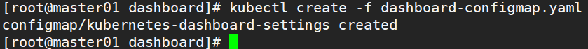 #查看类型为 ConfigMap 的资源对象 kubernetes-dashboard-settings 是否生成