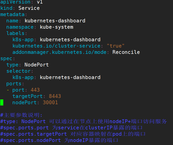 5、dashboard-service.yaml:负责将容器中的服务提供出去,供外部访问