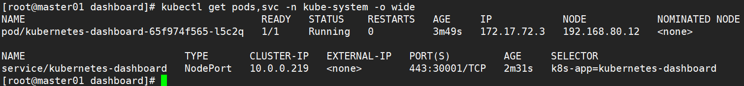 #1,查看创建在指定的 kube-system 命名空间下的 pod 和 service 状态信息