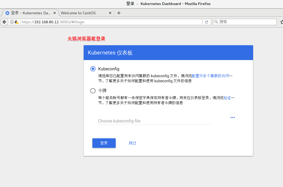 火狐浏览器可直接访问:https://192.168.80.12:30001
