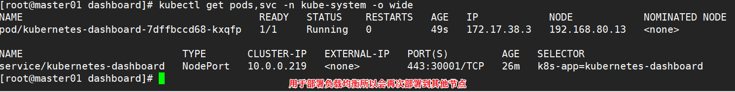 - 1.2.4、查看创建在指定的 kube-system 命名空间下的 pod 和 service 状态信息