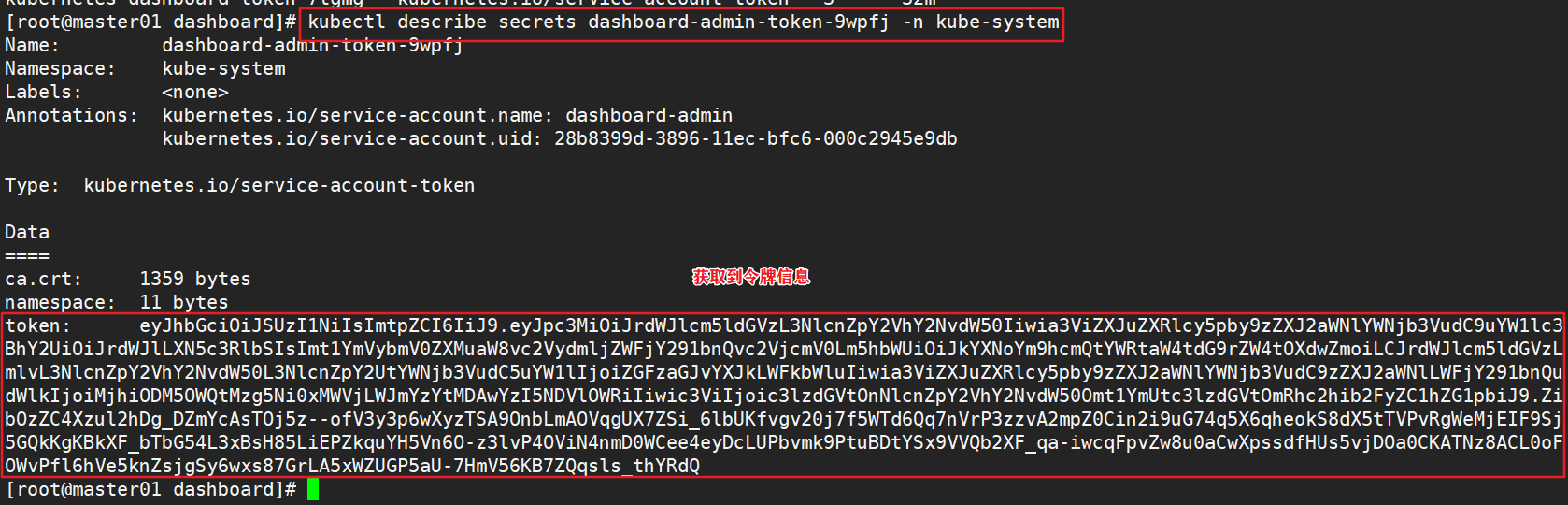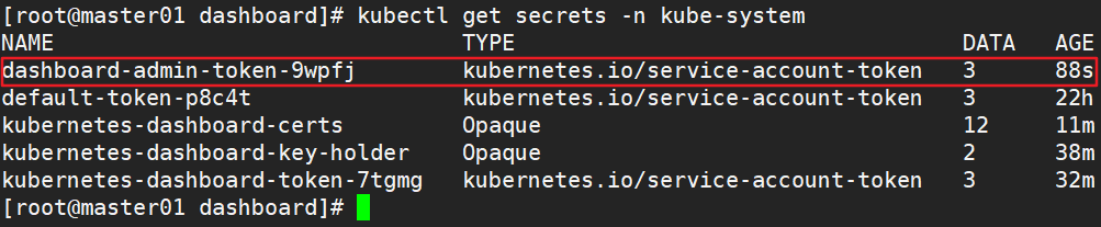 kubectl describe secrets dashboard-admin-token-kpmm8 -n kube-system