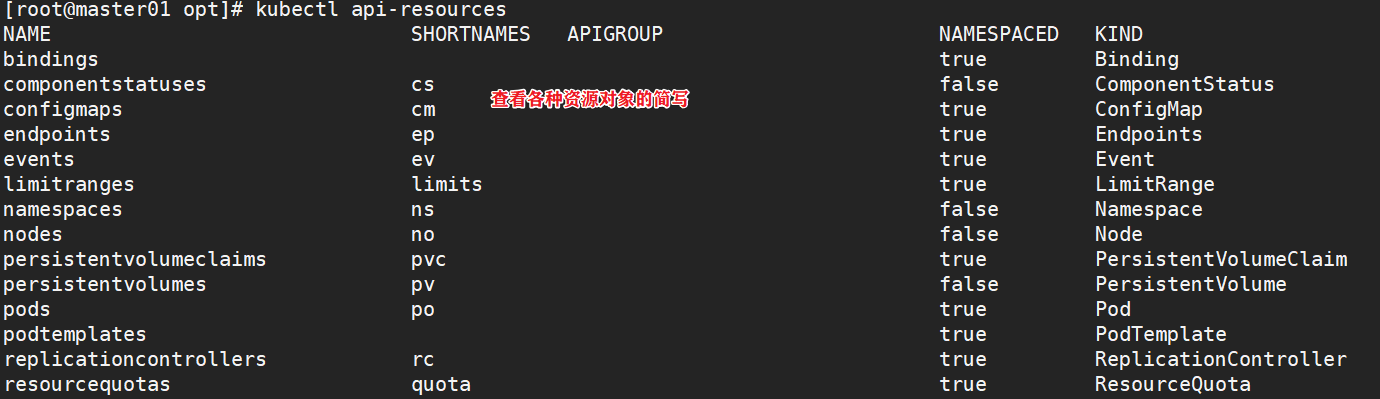resource可以是具体资源名称,如pod nginx-xxx;也可以是资源类型,如pod;或者all(仅展示几种核心资源,并不完全)