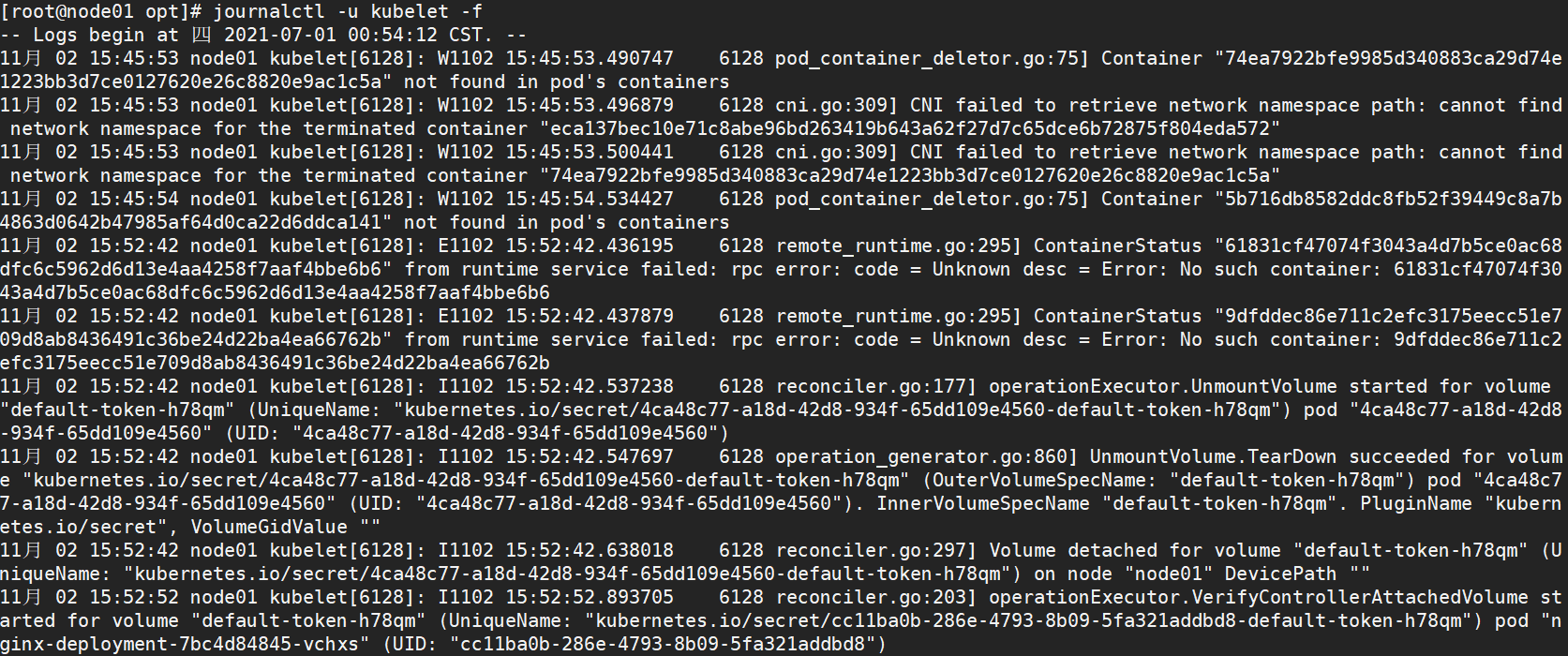 kournalctl -u kubelet -f