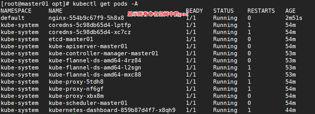 --all-namespaces 或-A :表示显示所有命名空间