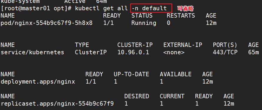 kubectl get all [-n default]