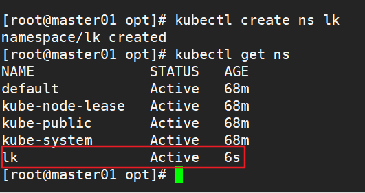 - 3.4、创建命名空间lk