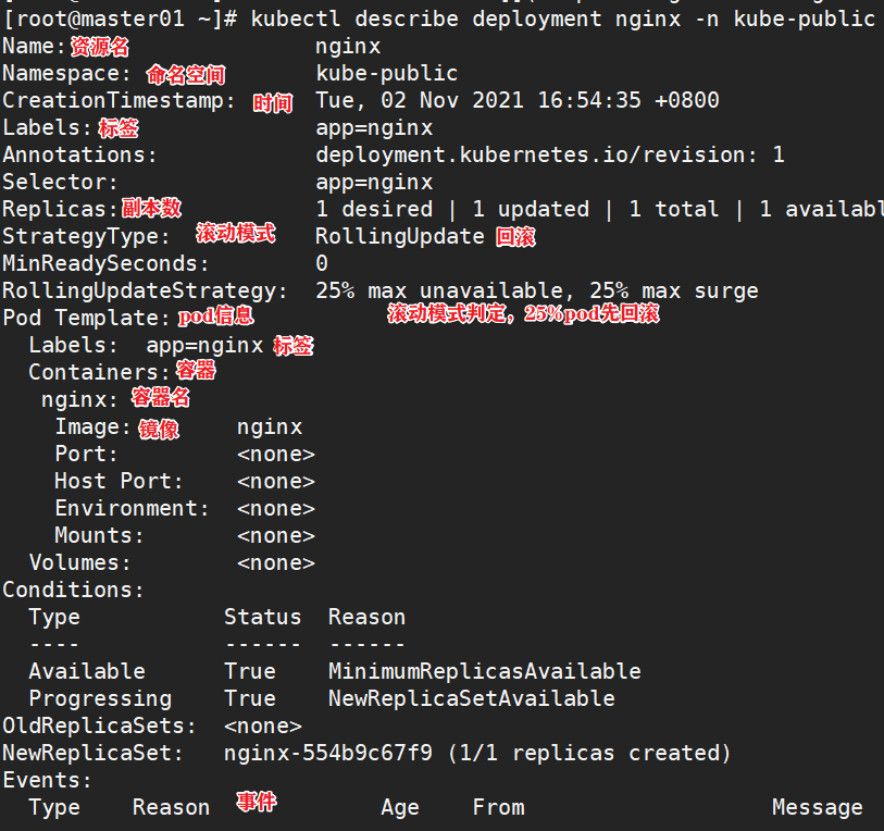 kubectl describe deployment nginx -n kube-public