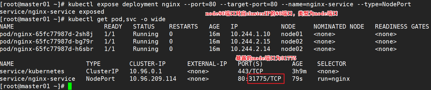 #nodeport:在每个node上打开一个端口以供外部访问,kubernetes将会在每个node上打开一个端口并且每个node的端口都是一样的,通过nodeIP:nodeport的方式kubernetes集群外部的程序可以访问service