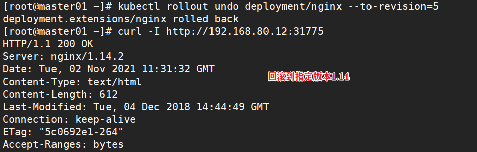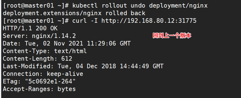 kubectl rollout undo deployment/nginx --to-revision=1