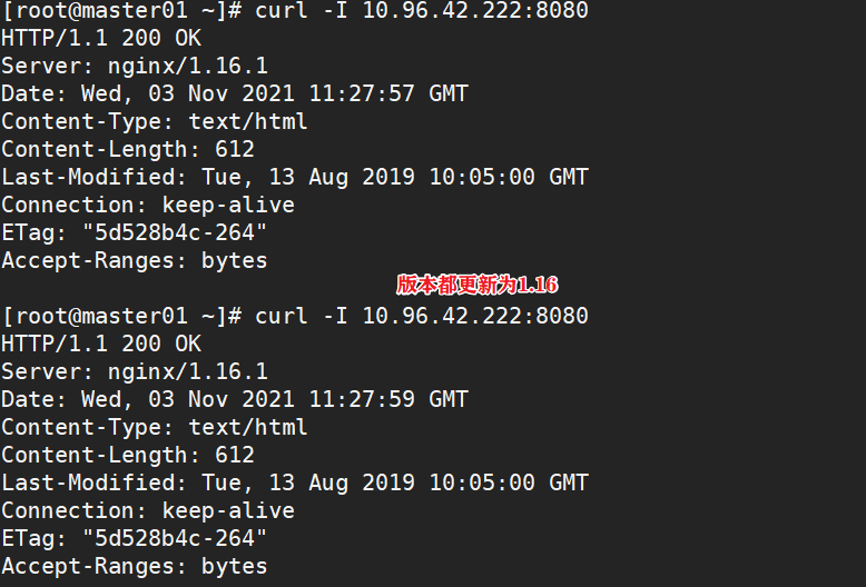 kubectl rollout status deployment nginx #观察更新状态