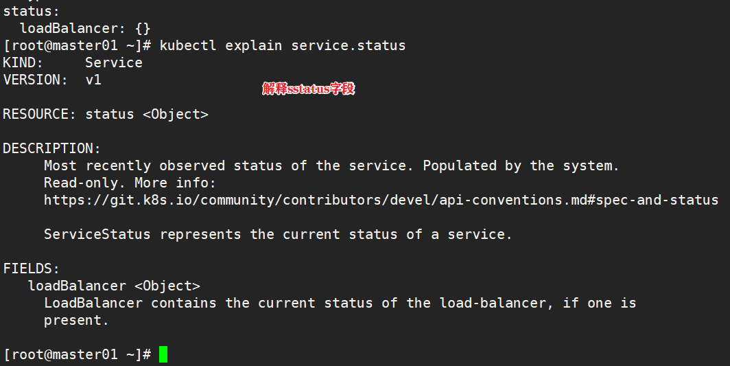 kubectl explain service.status