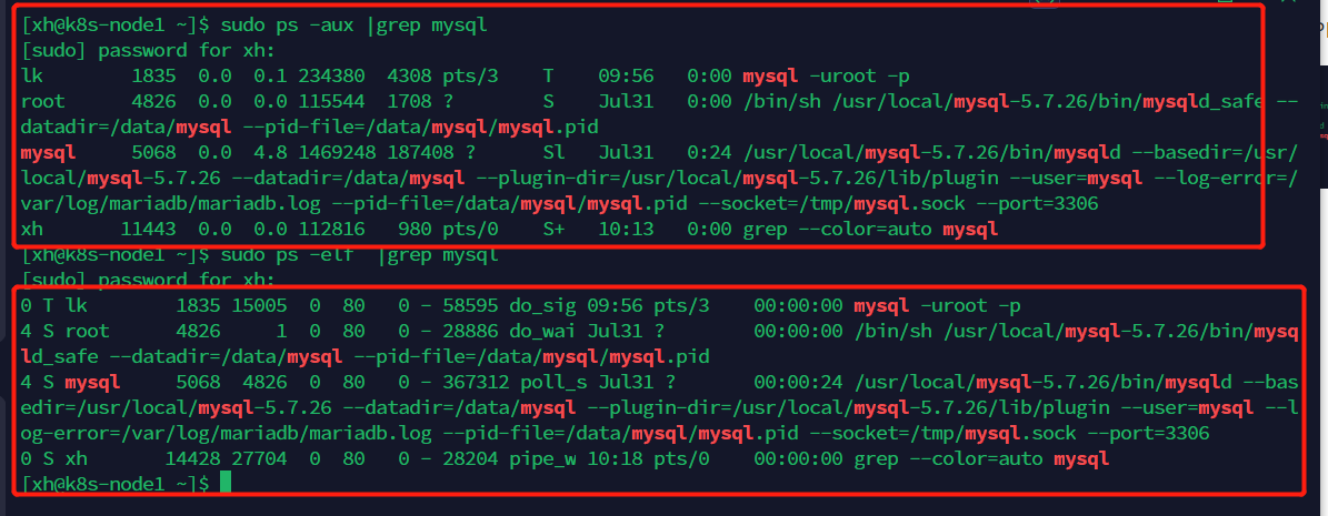 ps命令——查看静态的进程统计信息(⼀般结合选项使⽤ ps aux 或 ps -elf 命令) 建议使⽤ ps -elf 查询,输出的