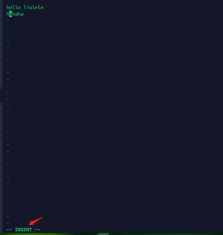2、输入i 或者 a ,就会显示insert /插入---》可以写内容了