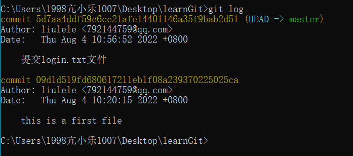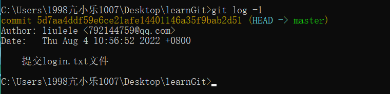 • git log -1 #显示最新的一条提交记录信息