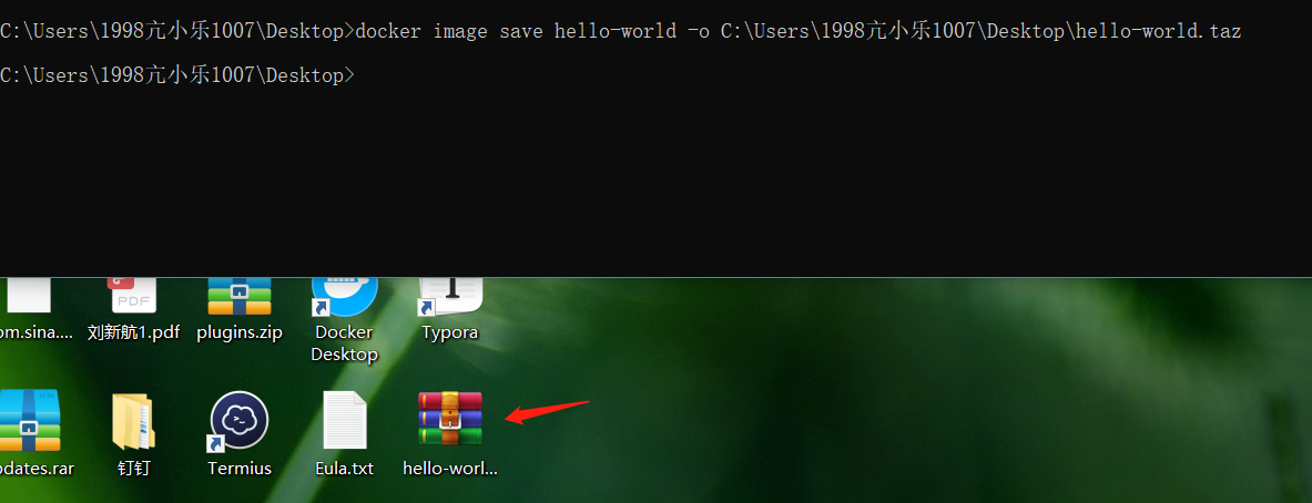 导出 docker image save hello-world -o C:\Users\1998亢小乐1007\Desktop\hello-world.taz