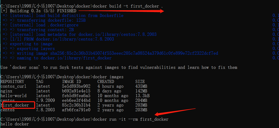 2.构建镜像 docker build -t first_docker . -t后面跟构建镜像的名字