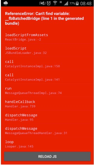 说明你没有启动 packager server,你没有执行第7步或者第7步没成功, 这个先不用急,可以等第8步完成后,执行第7部也可(第7步和第8步先后顺序无所谓,但是一定得启动第7步)
