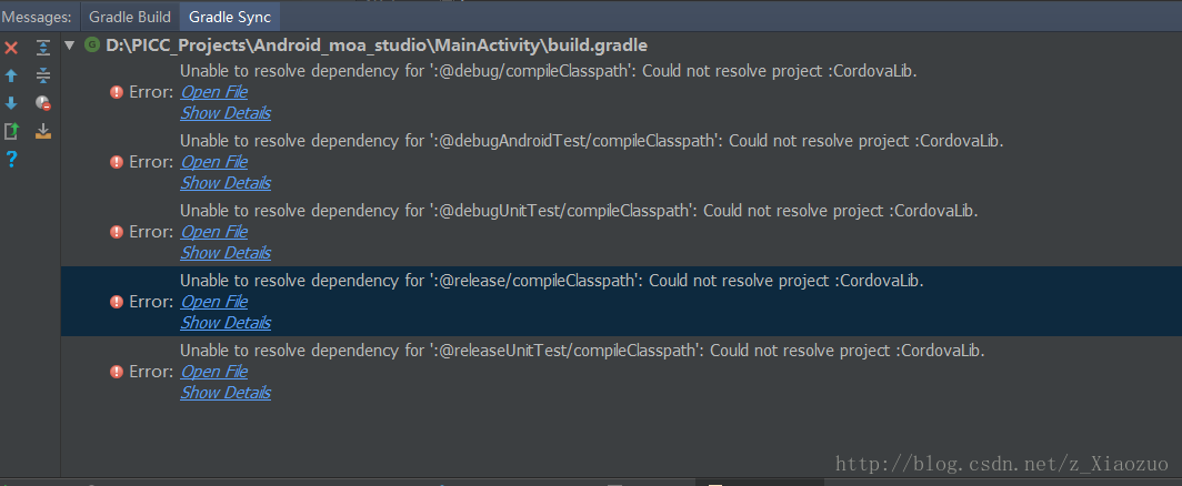 releaseCompile project(path: "CordovaLib", configuration: "release") 改成 implementation project(':CordovaLib')