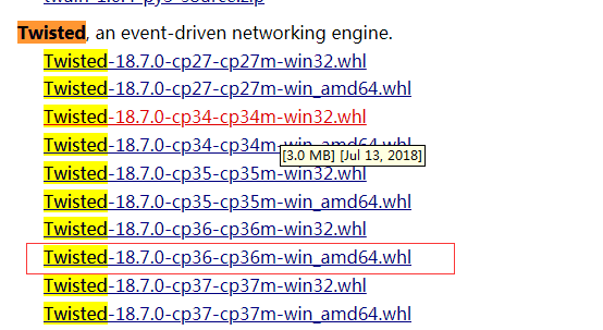 所以,要做的就是去网站下载Twisted之类的安装文件,先把它们装上,安装方法和上边的相同。