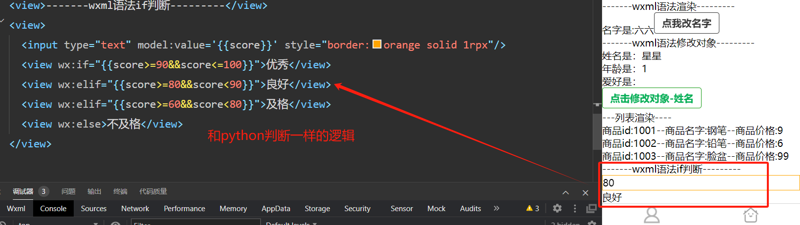 # 1 在页面 xx.js 的 Page() 方法的 data 对象中进行声明定义 # 2 在xx.wxml 中使用 {{}} 包裹,显示数据 # 3 可以显示如下,不能编写js语句或js方法 -变量 -算数运算 -三元运算 -逻辑判断 # 4 只是单纯通过赋值,js中变量会变化,但是wxml中的页面不会变化,没有联动效果,需要使用setData()方法修改 - 更新数据 - 页面更新 -----------------------------------