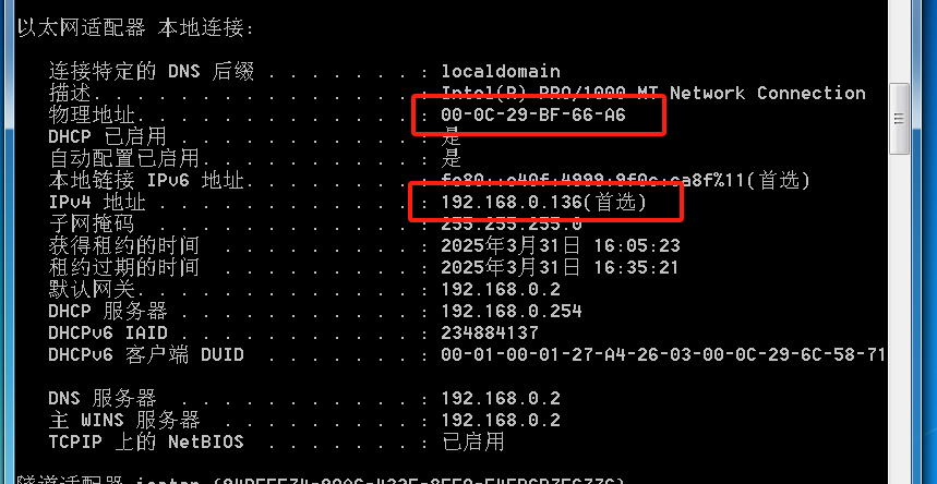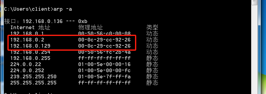 发现win7mac地址跟kali的一样了