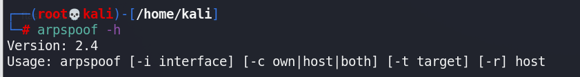 命令格式:arpspoof -h #查看arpspoof版本信息