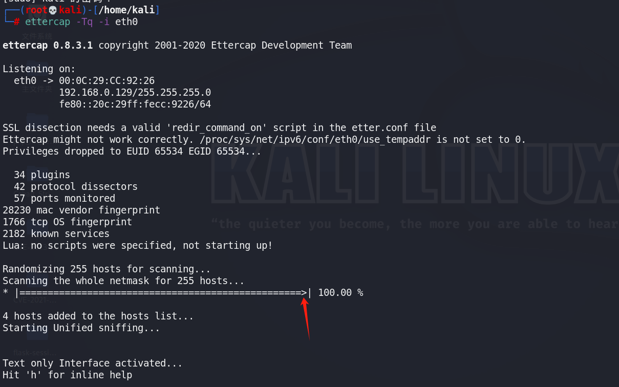 (2)启动:ettercap -Tq -i eth0