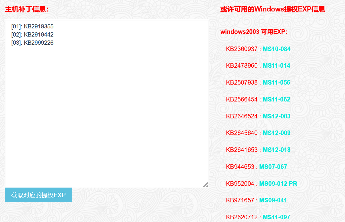 https://www.shentoushi.top/av/kb.php (补丁提权网站)