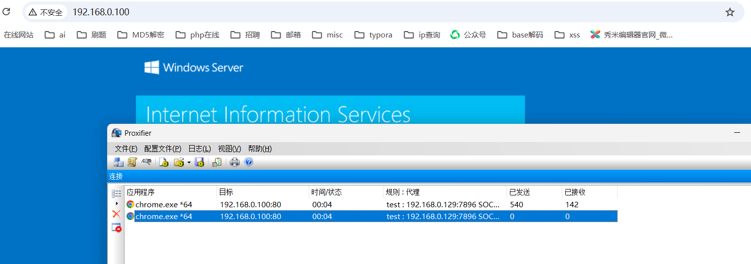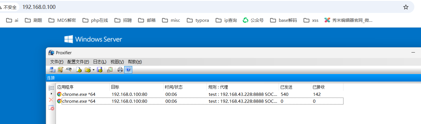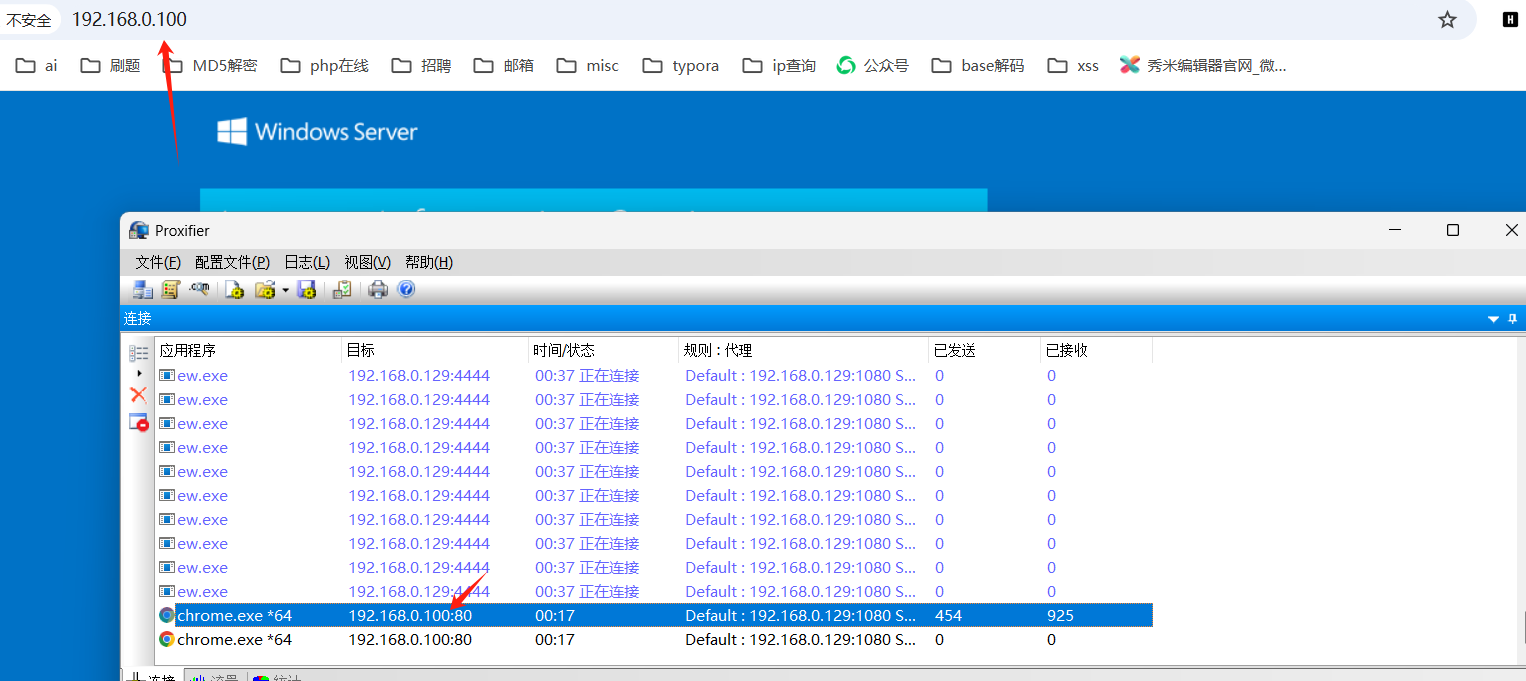 流量走向:浏览器访问----->kali(1080端口)---->kali(8888)---->win11主机