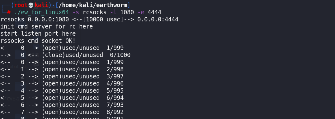 ./ew_for_linux64 -s rcsocks -l 1080 -e 4444