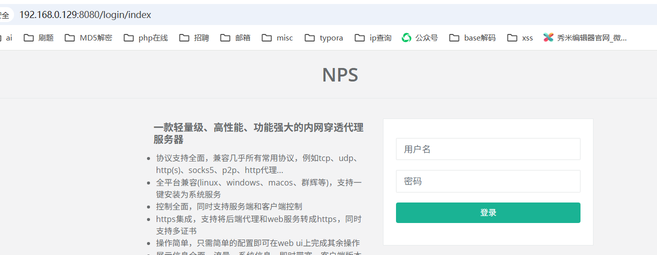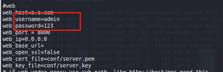 登录:账号密码在/etc/nps/conf/nps.conf中