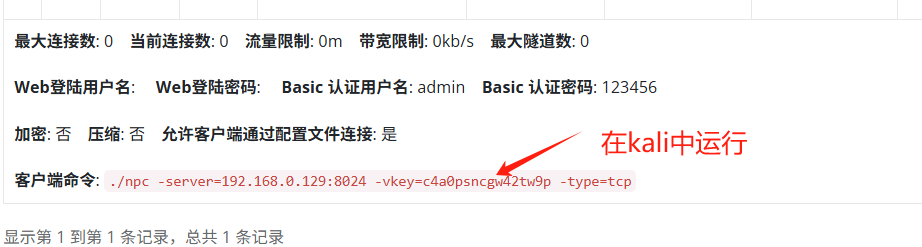 点击加号,在kali中运行客户端命令(还要下载客户端的一样的下载地址)