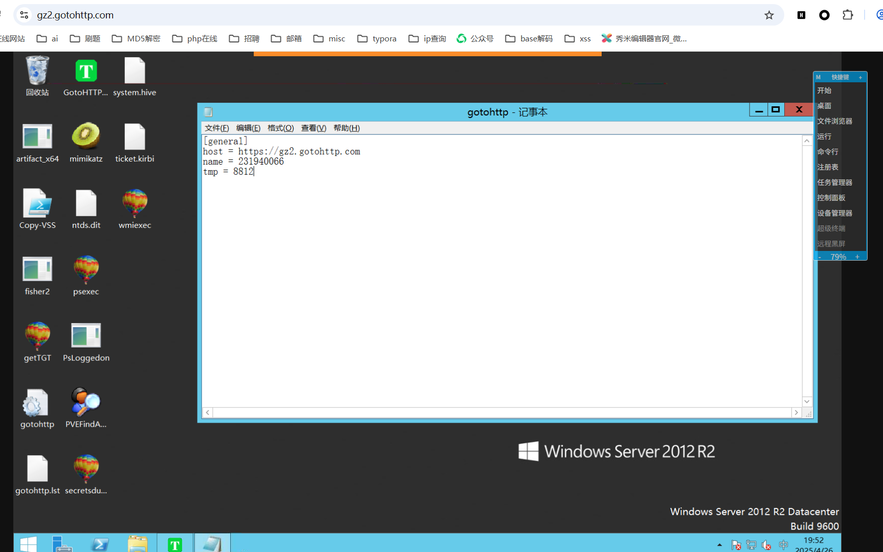 上传gotohttp到靶机 执行gotohttp 会发现多了两个文件 查看.ini文件会直接显示连接的url地址了 进行远程桌面连接