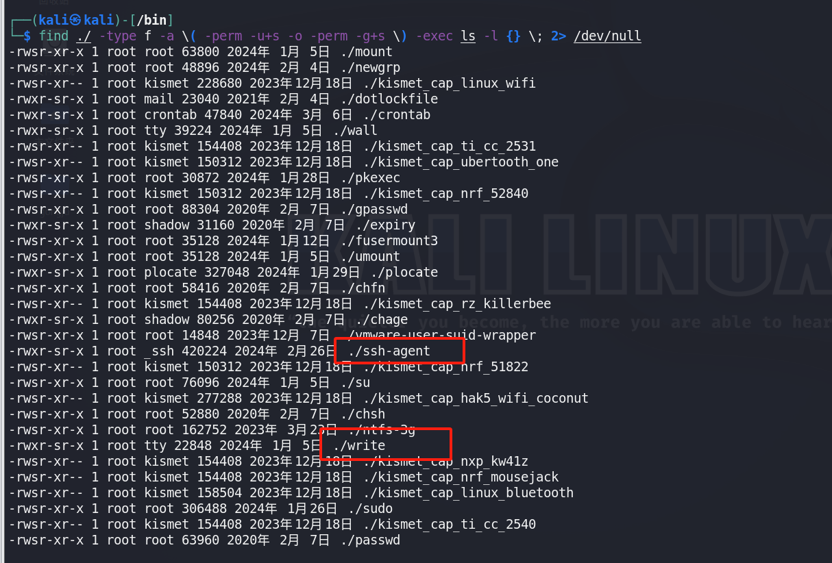查询具备suid权限的二进制可执行文件