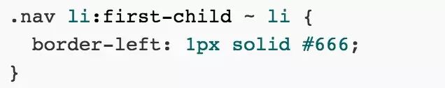 /* add border */ .nav li { border-right: 1px solid #666; } /* remove border */ .nav li:last-child { border-right: none; }