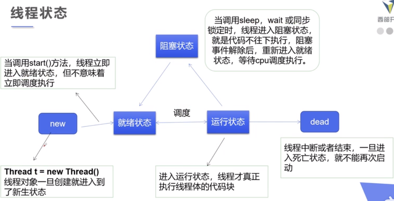 • 一个进程中,如果开辟了多个线程,线程的运行由调试器安提成调度,调度器是与操作系统紧密相关的,先事顺序是不能人为的干预的