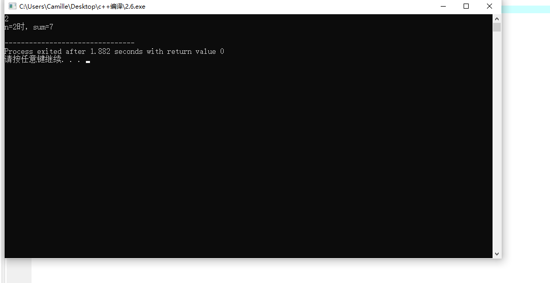#include<stdio.h> #include<math.h> int main() { int sum,a,n,q; q=2,a=1; scanf("%d",&n); sum=a*(1-pow(q,n+1))/(1-q); printf("n=%d时,sum=%d\n",n,sum); return 0; }