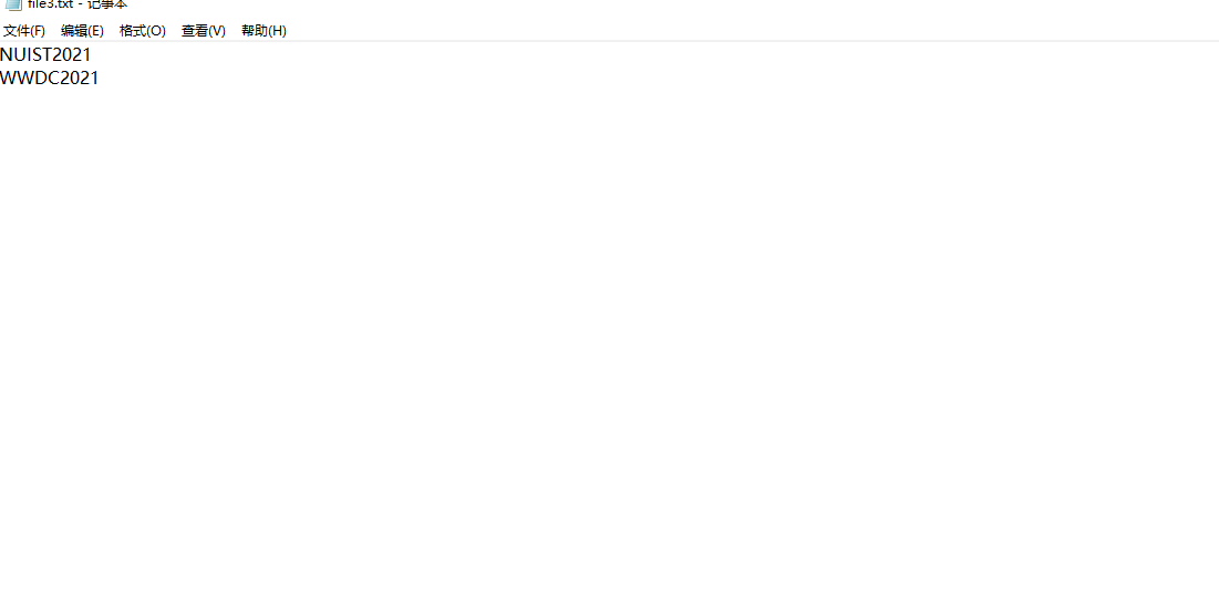 // 将file1.txt中小写字母转换成大写后,另存为file2.txt #include <stdio.h> #include <stdlib.h> int main() { FILE *fin, *fout; // 定义文件类型指针 int ch; fin = fopen("file1.txt", "r"); // 以只读文本方式打开文件file1.txt if (fin == NULL) { printf("fail to open file1.txt\n"); exit(0); } fout = fopen("d:\\file3.txt", "w"); // 以写文本方式打开文件file3.txt, 如果文件不存在,就创建一个 if (fout == NULL) { printf("fail to open or create file2.txt\n"); exit(0); } while( !feof(fin) ) { ch = fgetc(fin); // 从fin指向的文件file1.txt中读取单个字符,暂存在字符变量ch中 if(ch >= 'a' && ch <= 'z') // 如果是小写字母,则转换成大写 ch -= 32; fputc(ch, fout); // 将字符变量ch中的字符写入fout指向的文件file3.txt中 } fclose(fin); fclose(fout); return 0; }