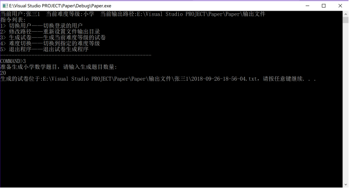 1、 程序的模块分工很明确,分别设置了AccountManager、FileOperator、PaperGenerator三个类用于进行账户控制、文件读写控制和试卷的生成,每个类的外部接口以及内部辅助函数的分工也很清晰;这样很有助于之后对程序进行维护和功能扩展。此外采用了枚举类型来表示不同的操作数和操作符,规划很合理。