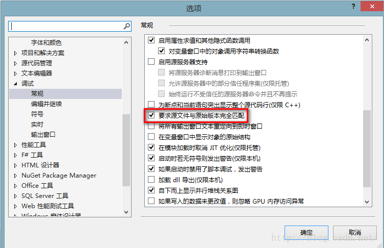 4、工具——选项——调试——常规中的“要求源文件和原始版本完全匹配”的勾去掉