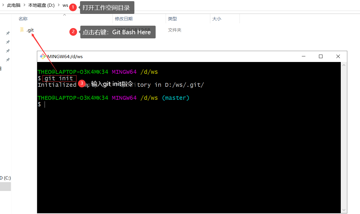 在工作空间的目录中,右键“Git Bash Here”打开git终端