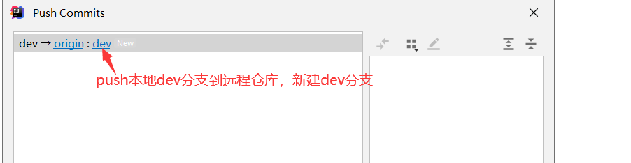 将本地dev分支push到远程仓库,新建远程仓库的dev分支