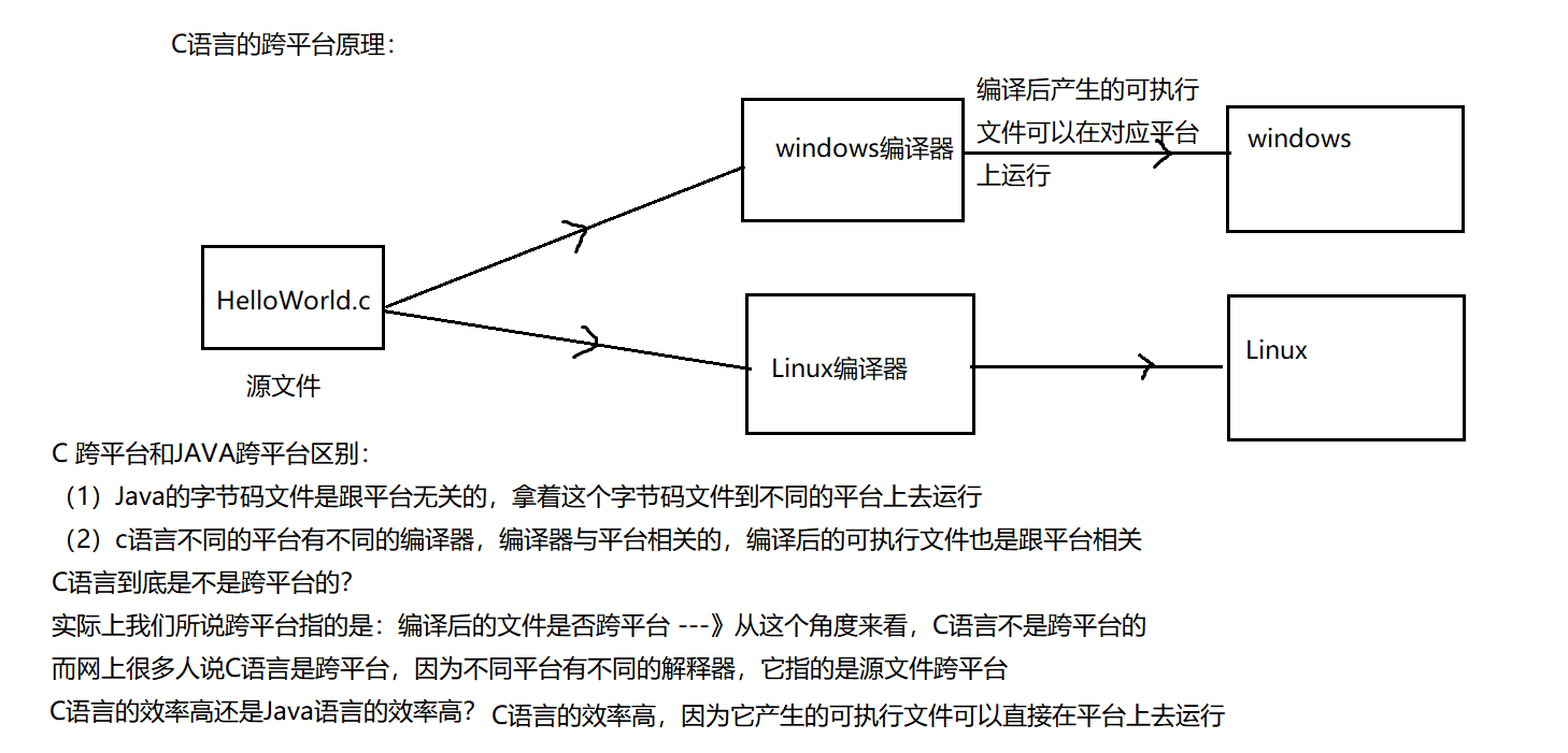 我们说的语言跨平台是编译后的文件跨平台,而不是源程序跨平台。