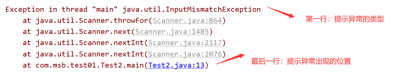 /*(1)调用toString方法,显示异常的类名(全限定路径)*/