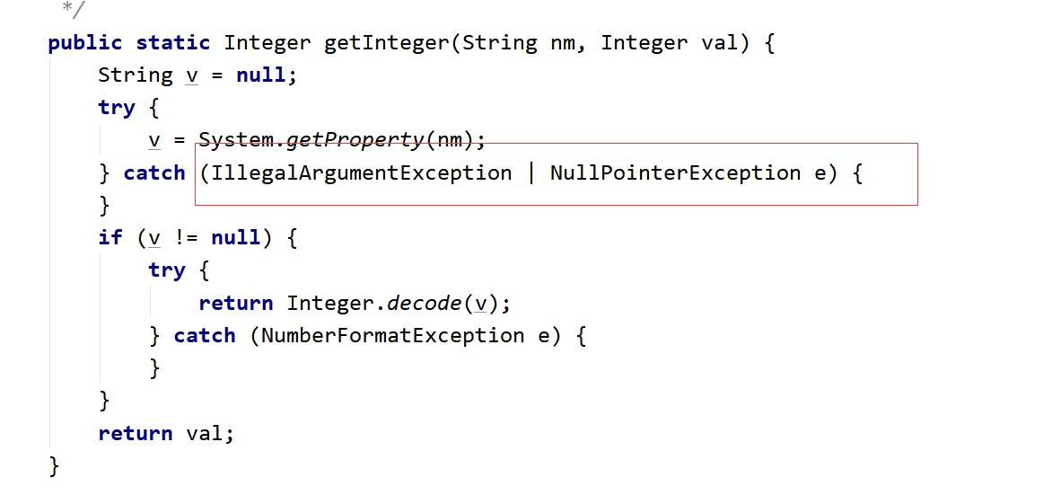 【4】在JDK1.7以后,异常新处理方式:可以并列用|符号连接: