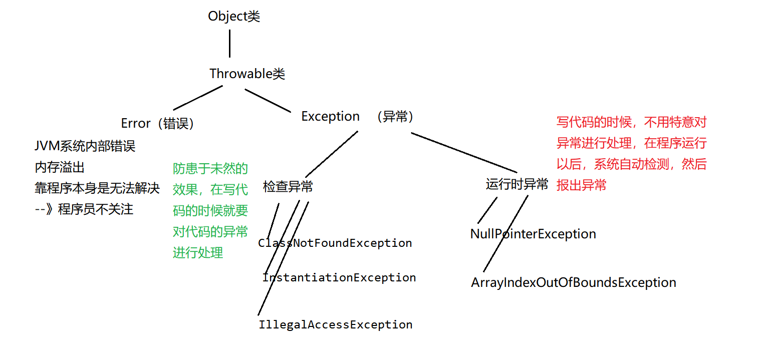 注意:程序中语法错误,逻辑错误 都不属于上面的Error,Exception