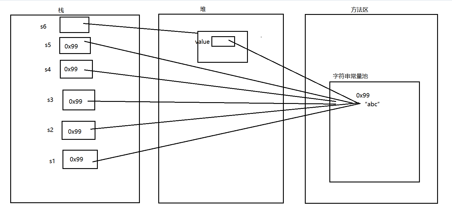 内存:开辟两个空间(1.字符串常量池中的字符串 2.堆中的开辟的空间)